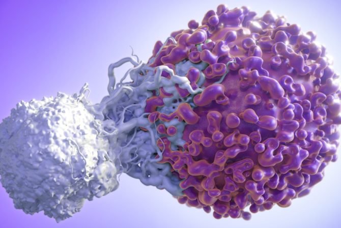 T cell attacking cancer cell